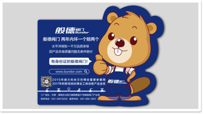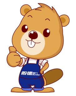 般德吉祥物選用能夠通過辛勤勞動改善自然生態(tài)環(huán)境的動物河貍,卡通河貍左手掐腰右手持贊動作,河貍主色為淺棕色,服裝為藍色工裝印有般德閥門logo,突出品牌。體現(xiàn)品牌自信且給人放心。