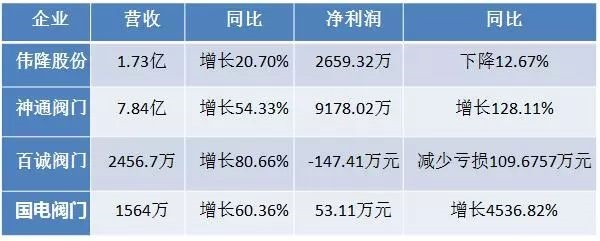 從四家閥門行業(yè)的半年報(bào)來看,四家閥門企業(yè)都實(shí)現(xiàn)了業(yè)績的快速增長。