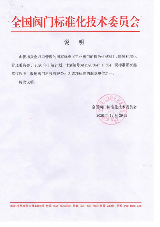 圖|般德閥門(mén)是《工業(yè)閥門(mén)的逸散性試驗(yàn)》標(biāo)準(zhǔn)的起草單位之一