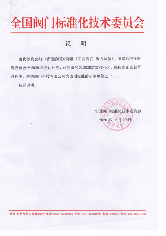 圖|般德閥門(mén)是《工業(yè)閥門(mén) 壓力試驗(yàn)》標(biāo)準(zhǔn)的起草單位之一