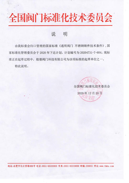 圖|般德閥門(mén)是《通用閥門(mén) 不銹鋼鑄件技術(shù)條件》標(biāo)準(zhǔn)的起草單位之一