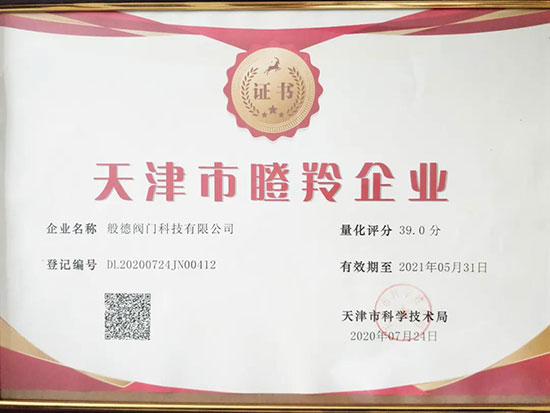 般德閥門(mén)榮獲“天津市瞪羚企業(yè)”。