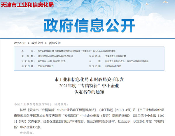 近日,天津市工業(yè)和信息化局正式發(fā)布“2021年度天津市'專精特新'中小企業(yè)認(rèn)定名單通知”,般德閥門成功躋身于名單行列。