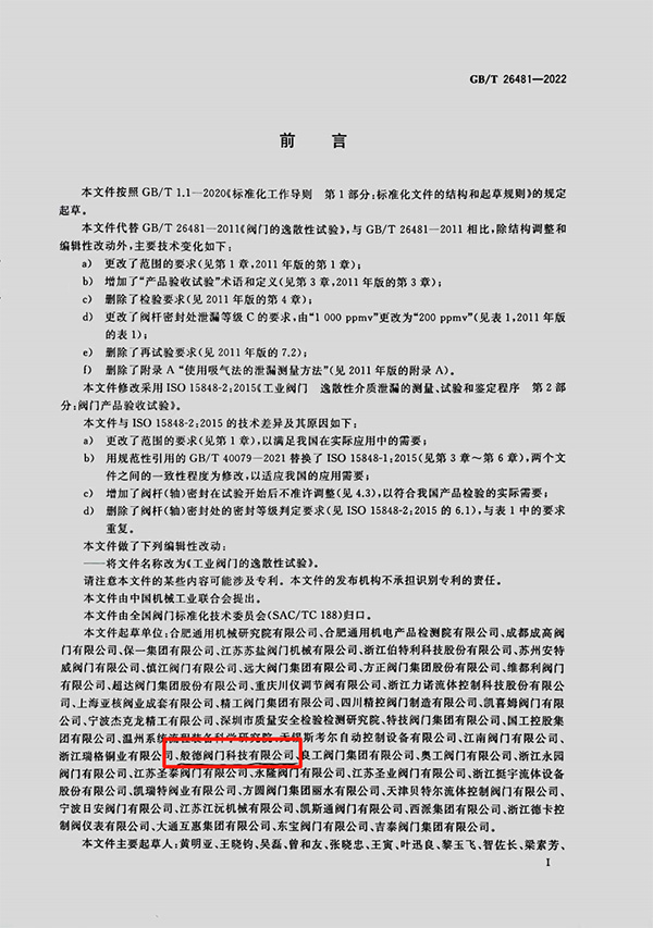 近日,由般德閥門等多家企業(yè)參與起草的國(guó)家標(biāo)準(zhǔn)《工業(yè)閥門的逸散性試驗(yàn)》正式發(fā)布,此項(xiàng)標(biāo)準(zhǔn)將于2023年7月1日起實(shí)施。
