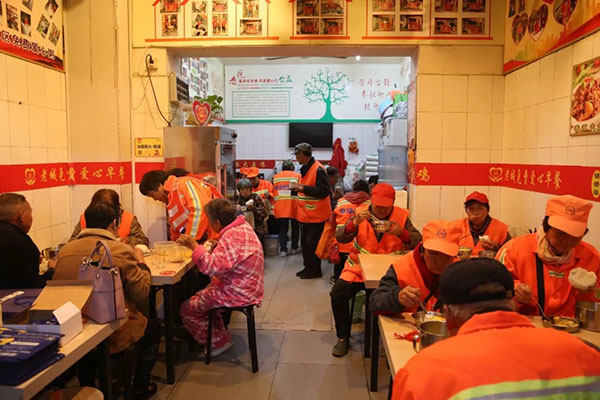 環(huán)衛(wèi)工人們穿著黃色的工作服,有秩序地排隊登記進店吃早餐,每個人都會對志愿者們說聲謝謝,他們沒有時間互相聊天,匆匆吃完飯就收拾東西奔赴工作地點,趕在城市“蘇醒”之前,讓城市的面貌煥然一新。志愿者們也都加快了手上的工作,盡量減少環(huán)衛(wèi)工人們的等待時間,早點吃上一口熱乎乎的早餐,不耽誤他們的工作。