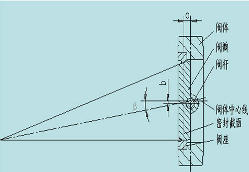 三偏心蝶閥的工作原理,在結(jié)構(gòu)上蝶閥的閥體上有與管道相連的橫向閥口,閥口內(nèi)有閥板,軸垂直于閥口穿在閥體與閥板內(nèi)。該閥板的邊緣設(shè)置外球面,在閥口上設(shè)置可以與外球面配合的密封面,密封面與外球面配合密封時(shí)形成密封線與軸的軸心間有偏心距a,在閥板的橫向中心線即閥口中心線與轉(zhuǎn)軸的中心線間有偏心距 b,在外球面的連線與閥口的中心線間有夾角β,這就是三偏心蝶閥的原理。