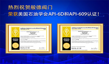 般德榮獲美國石油學(xué)會API-6D和API-609認(rèn)證