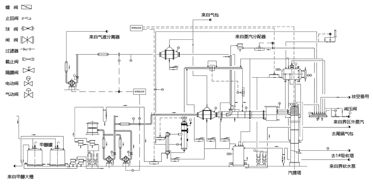 進料氣化及產(chǎn)品冷卻:進料汽化和產(chǎn)品急冷區(qū)由甲醇進料緩沖罐,進料閃蒸罐,洗滌水汽提塔,急冷塔、水汽提塔等組成。經(jīng)閃蒸罐出來的介質(zhì)溫度較高,能達到350℃,閥門主要材質(zhì)由碳鋼及不銹鋼閥門組成。急冷塔介質(zhì)溫度偏低,實際溫度能達到-110℃,閥門需要采用延長閥蓋結(jié)構(gòu),且液化介質(zhì)殘留在中腔,溫度升高后壓力過大,需注意閥門必須設計卸壓孔。